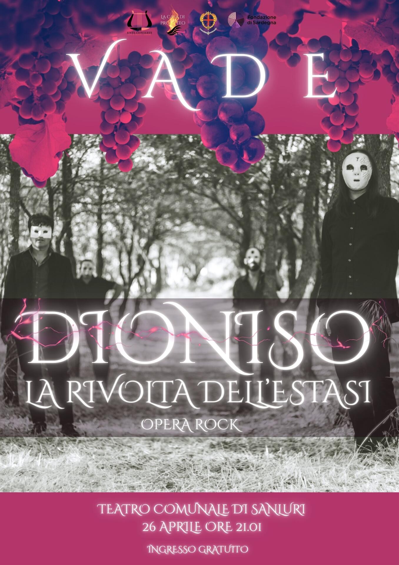 “I VADE cantano Dioniso, con i suoni e le parole della modernità. Il 26 aprile nel teatro Comunale di Sanluri porteremo in scena il poema musicale “Dioniso, la Rivolta dell’Estasi”.