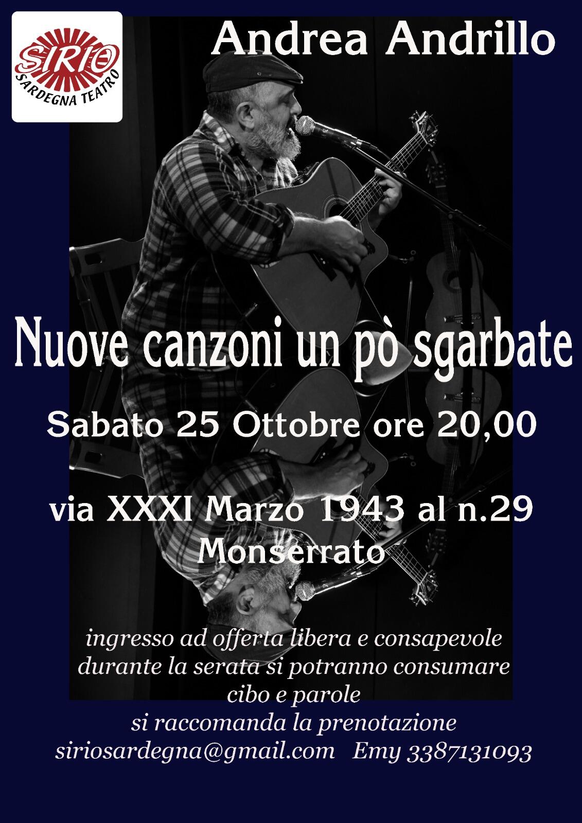 “NUOVE CANZONI UN PO’ SGARBATE” – Andrea ANDRILLO in CONCERTO al “SIRIO SARDEGNA TEATRO” di MONSERRATO