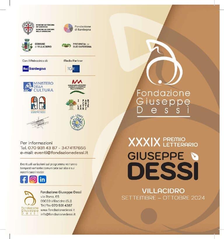 La trentanovesima edizione Premio letterario Giuseppe Dessì è promossa e organizzata dalla Fondazione Giuseppe Dessì, con il contributo dell’Assessorato Regionale della Pubblica Istruzione e Beni Culturali della Regione Autonoma della Sardegna, del Comune di Villacidro e della Fondazione di Sardegna, con il Patrocinio di Rai Sardegna e la Media Partner di TGR, del MiC – Ministero della Cultura e del GAL Linas Campidano.