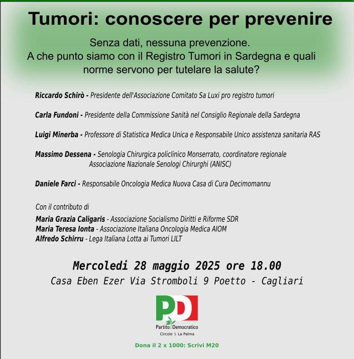 TUMORI: CONOSCERE per PREVENIRE – INCONTRO-DIBATTITO MERCOLEDI’ 28 MAGGIO a a CAGLIARI