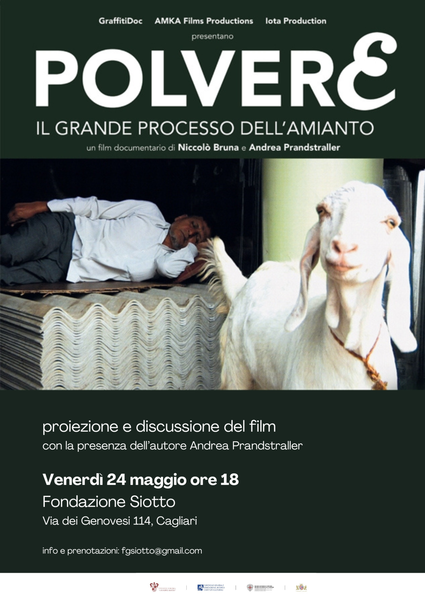 Una serata dedicata al tema dei danni provocati dall’amianto, sulla salute e sull’ambiente. A proporla è la Fondazione di ricerca “Giuseppe Siotto” che venerdì 24 maggio alle 18 nella sua sede di via Dei Genovesi 114 a Cagliari proietterà il pluripremiato documentario di Niccolò Bruna e Andrea Prandstraller “Polvere. Il grande processo dell’amianto”.